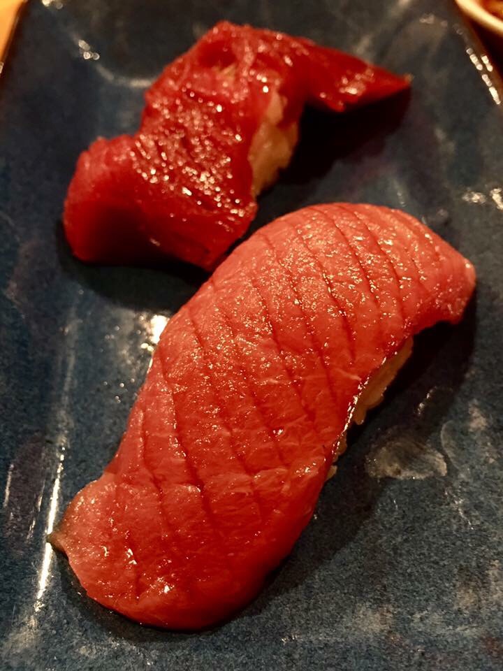 Omakase – Tuna, spring salmon, yellowtail, Kibinago – silver stripe/round herring and firefly squid. All from Japan and seasonal. I cannot use the word to tell you how fresh and delicious they were. The picture worth a thousand words.