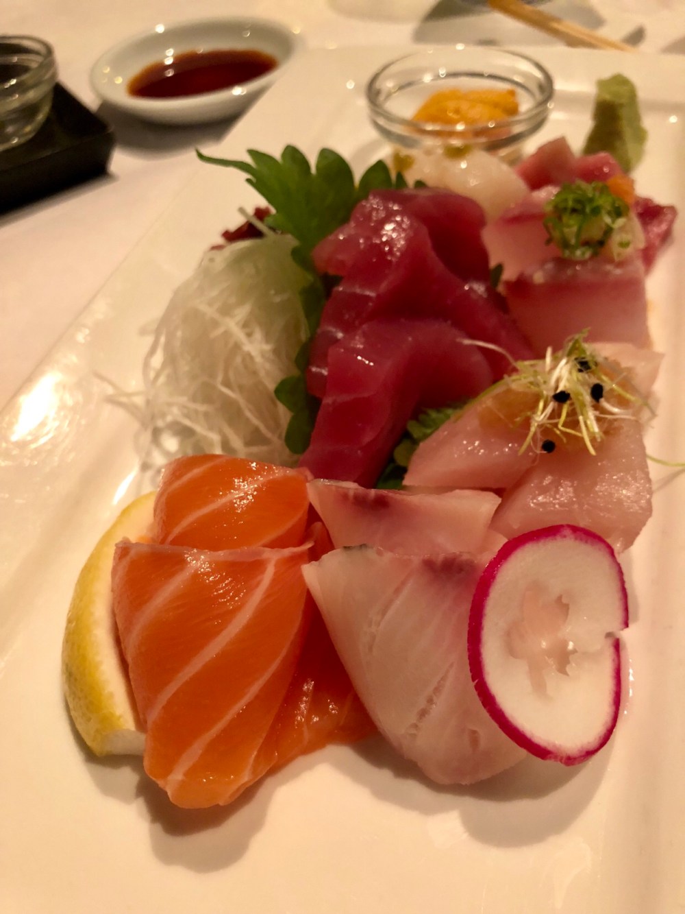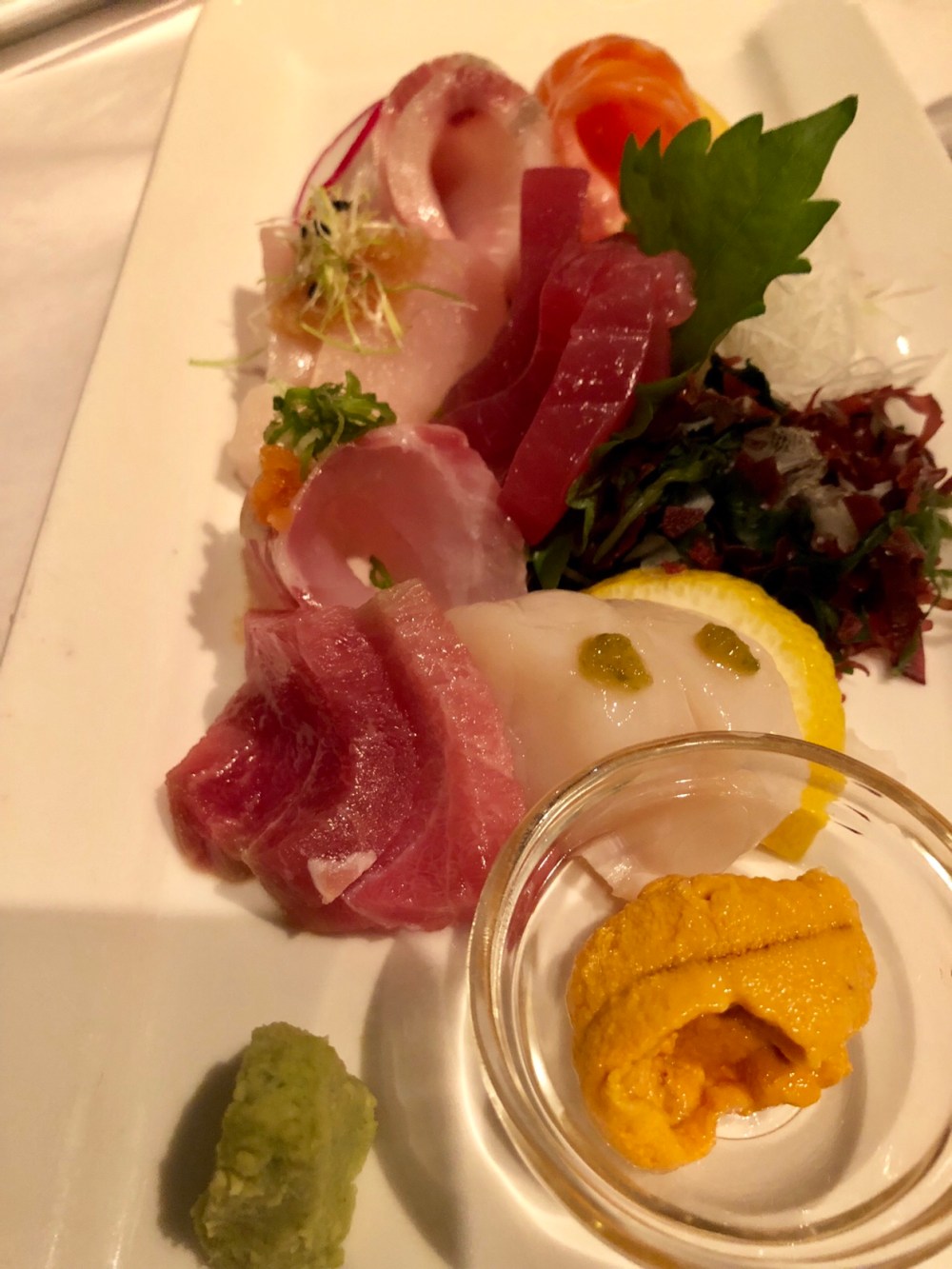 For Entrée, I got the sashimi Assortment. I especially loved the Hokkaido scallop was very fresh and sweet, paired perfectly with ponzu topping. The flavor is unforgettable. I add toro and uni for $17 and it was an amazing deal for such a quality sashimi plate. All of the fishes were fresh, clean and thickly cut.