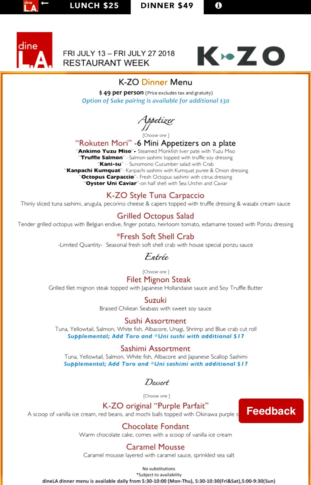 We tried out K-zo in Culver city, which I never been there before, for Dine in LA week and we had a very good time with excellent sushi and sake experience.