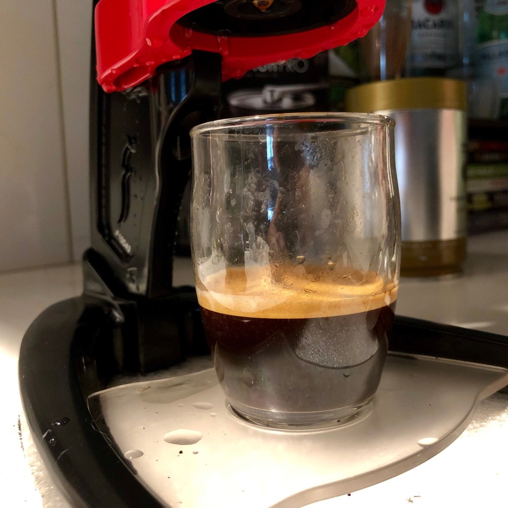 The coffee came out with good crema but I was struggling to pull the shot so I knew that I need coarser grounds. The espresso tasted a bit sour.