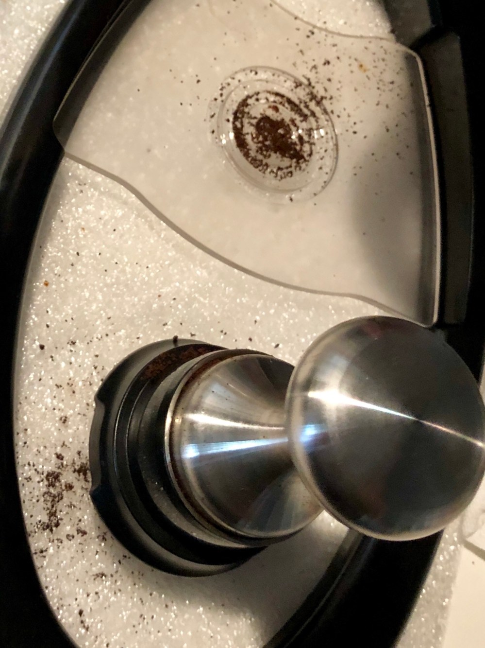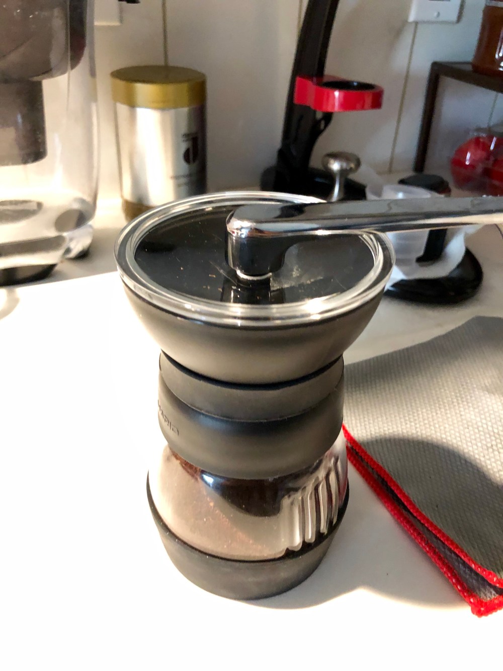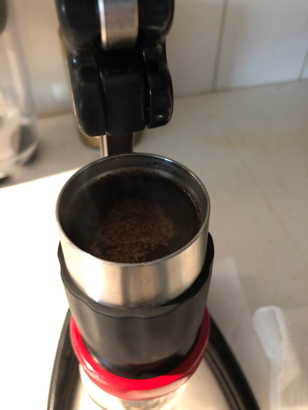1/ We need a good burr grinder. I have a Hario Skerton Pro. You can use pre- ground coffee but it might not produce as much crema as freshly ground coffee. Remember to get the coffee ground for espresso, which is finer than pour over and coarser than Turkish coffee. Home ground.com has a good article about this.