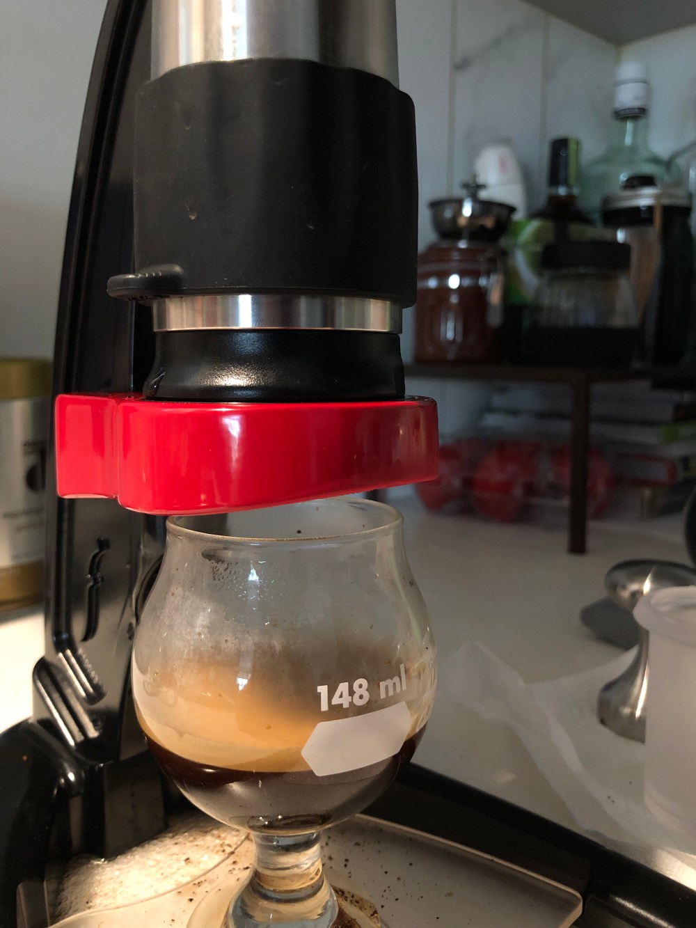 Continue to press the handle down until it reach the bottle of the cylinder and stop. Now enjoy your freshly press shot of espresso with some nice cream like what you got from the coffee shop π
