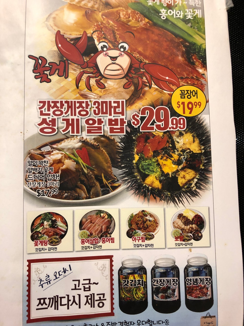 Yangnyeom Gejang (spicy marinated raw crab). Spicier than Ganjang Gejang. It was sweet and flavorful but I couldn’t taste as much crab flavor as Ganjang Gejang.